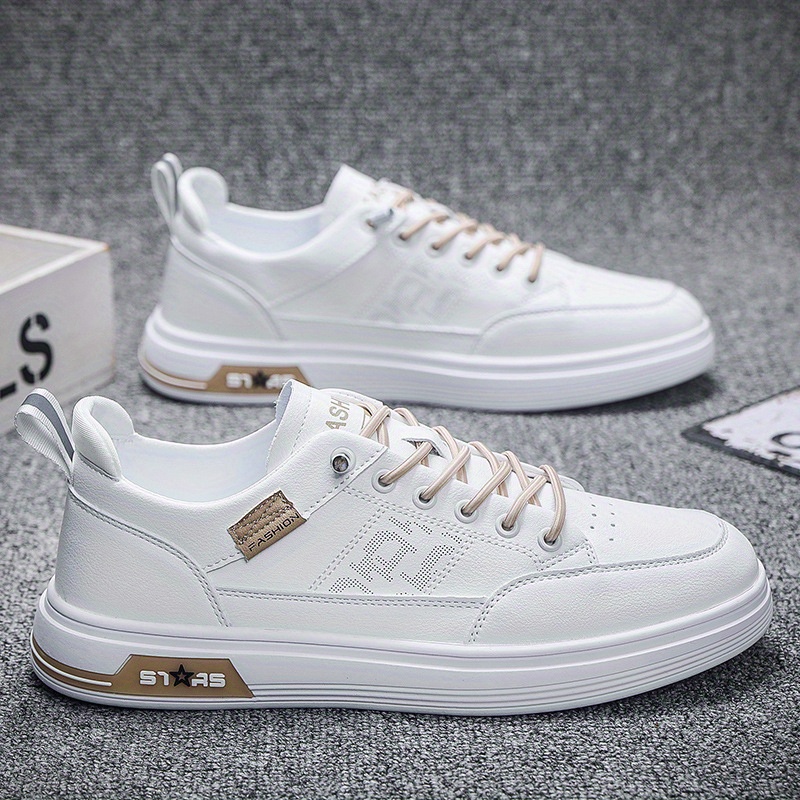 Men'S Lightweight Breathable Mesh Casual Sneakers - Slip-Resistant Rubber Sole, EVA Cushioned Insole for Daily Walking & Gym - Low-Top Lace-Up Design, White, Gym Shoes, Versatile Footwear, Sleek Sporty Look, Durable Footwear